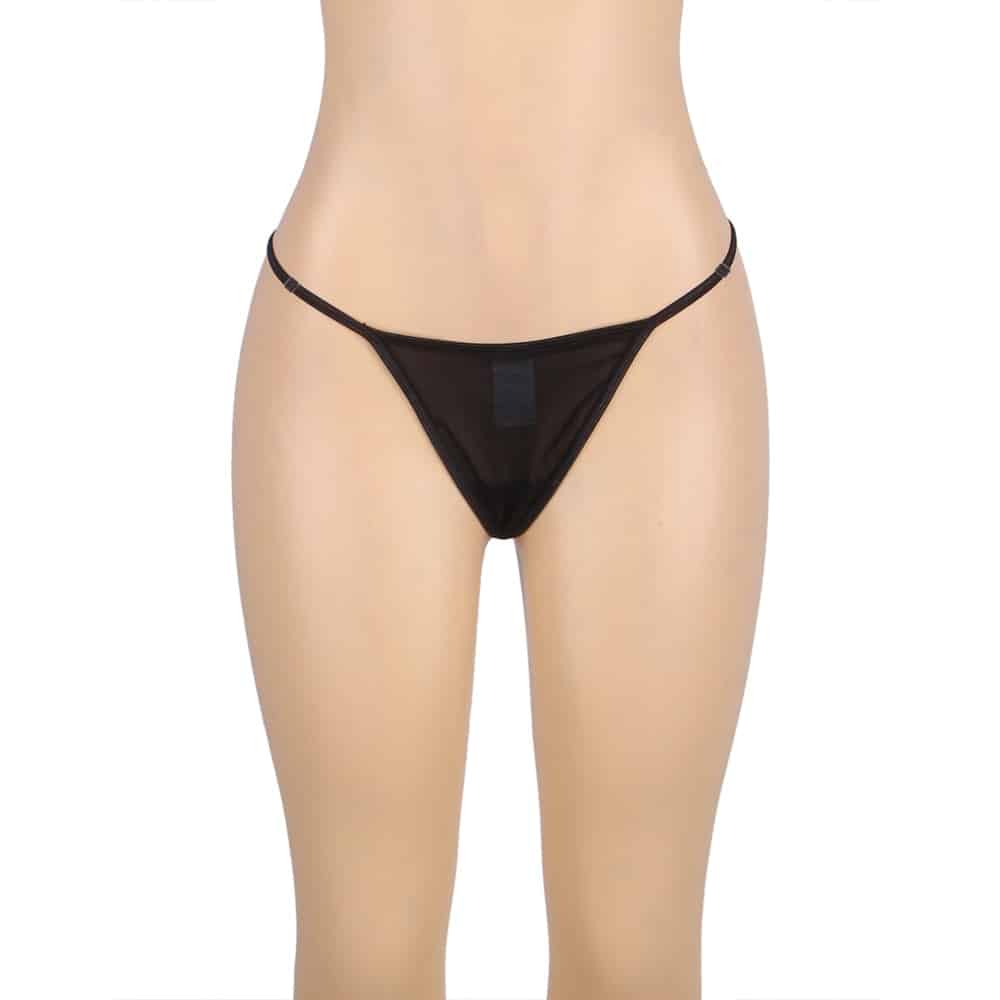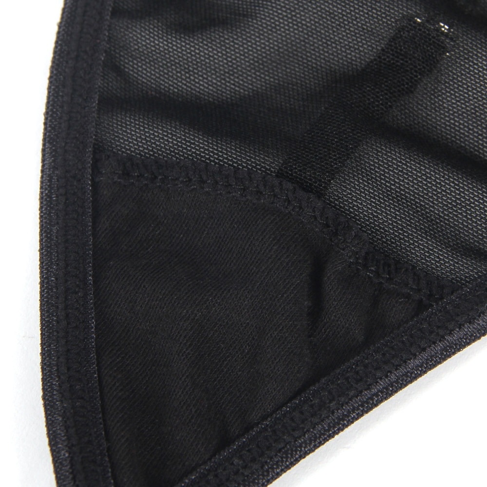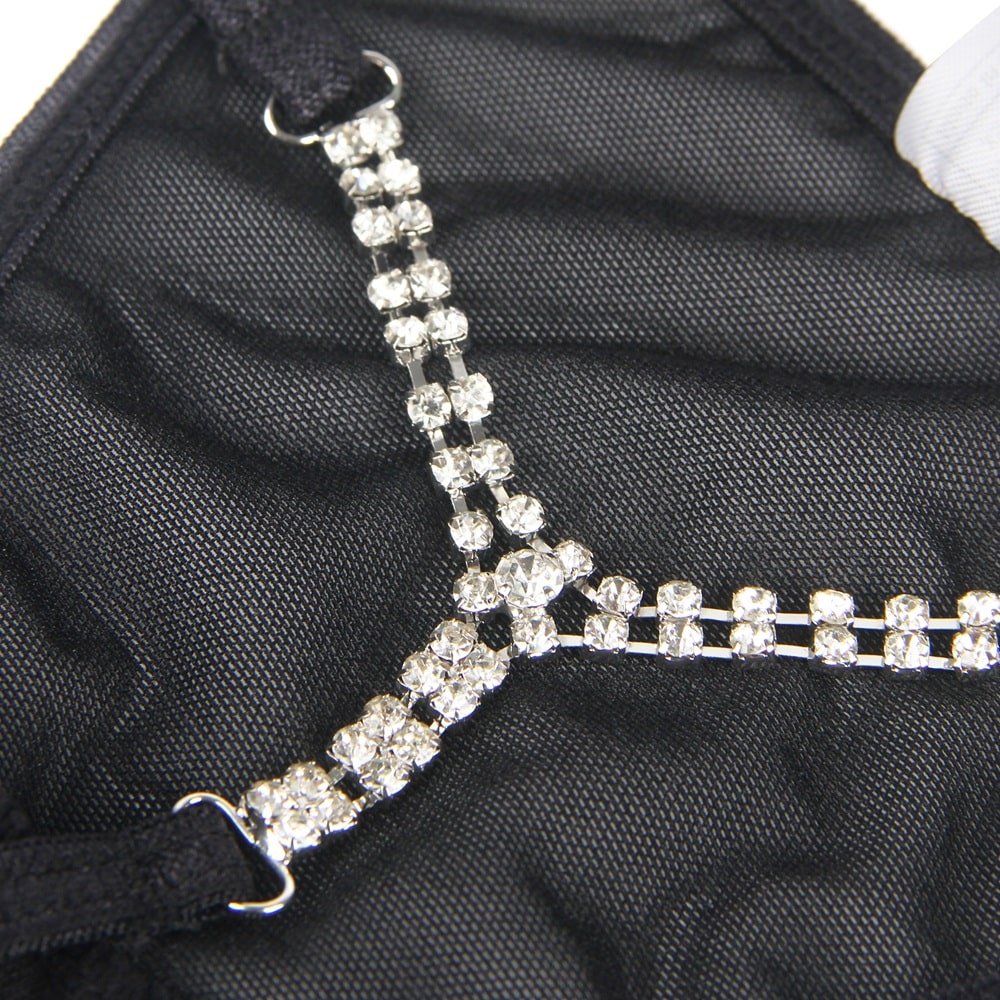 Elevate your lingerie collection with this stunning black diamond back g-string. Designed for those who appreciate the finer details, this piece combines the airy lightness of premium mesh with a touch of high-impact glamour.