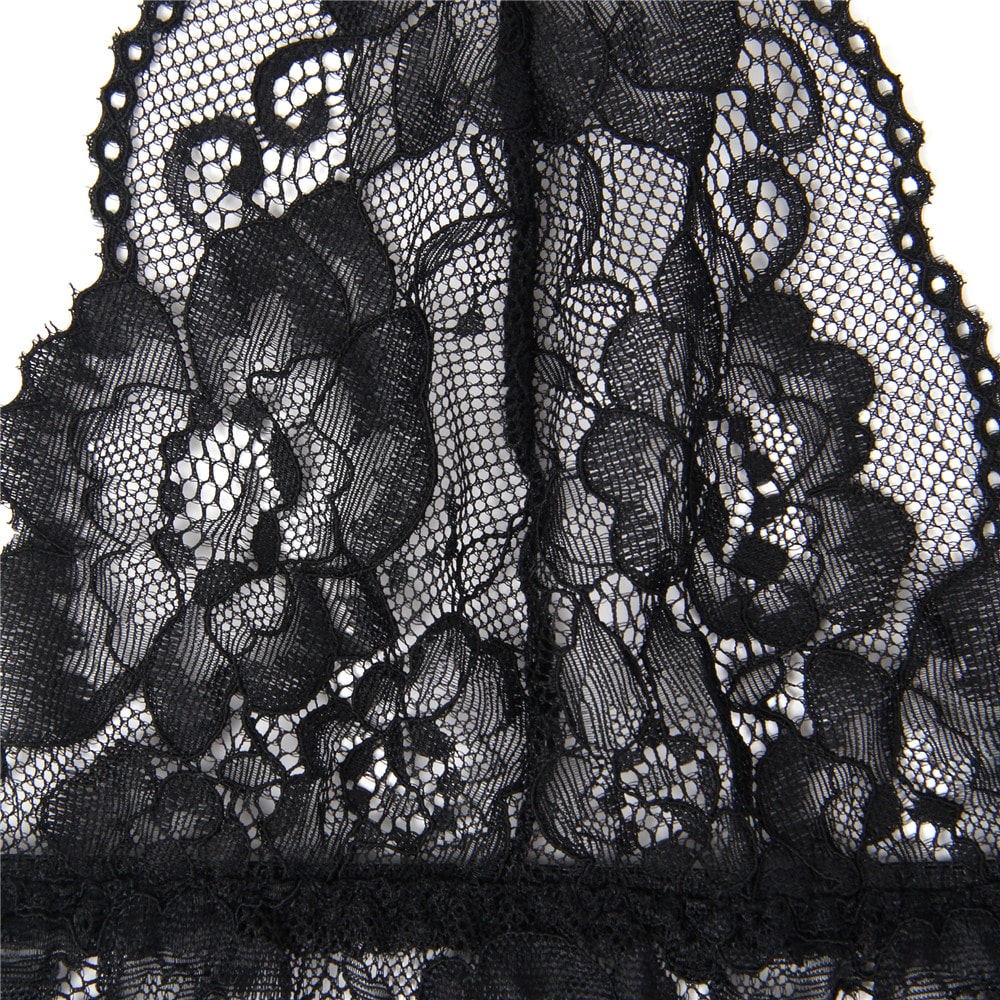 - Sheer lace triangle cups reveal a glimpse of your nipples