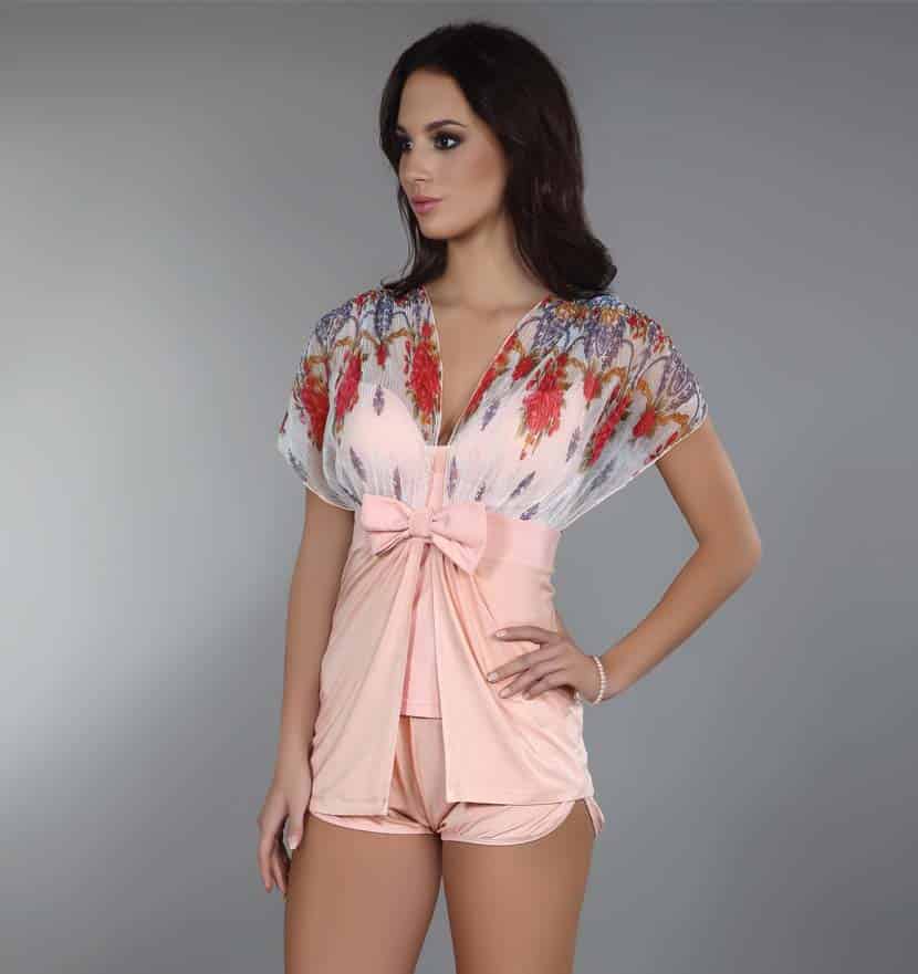 Item number: ETETLC90041Comfortable kimono in peach color and flower printed upper part.