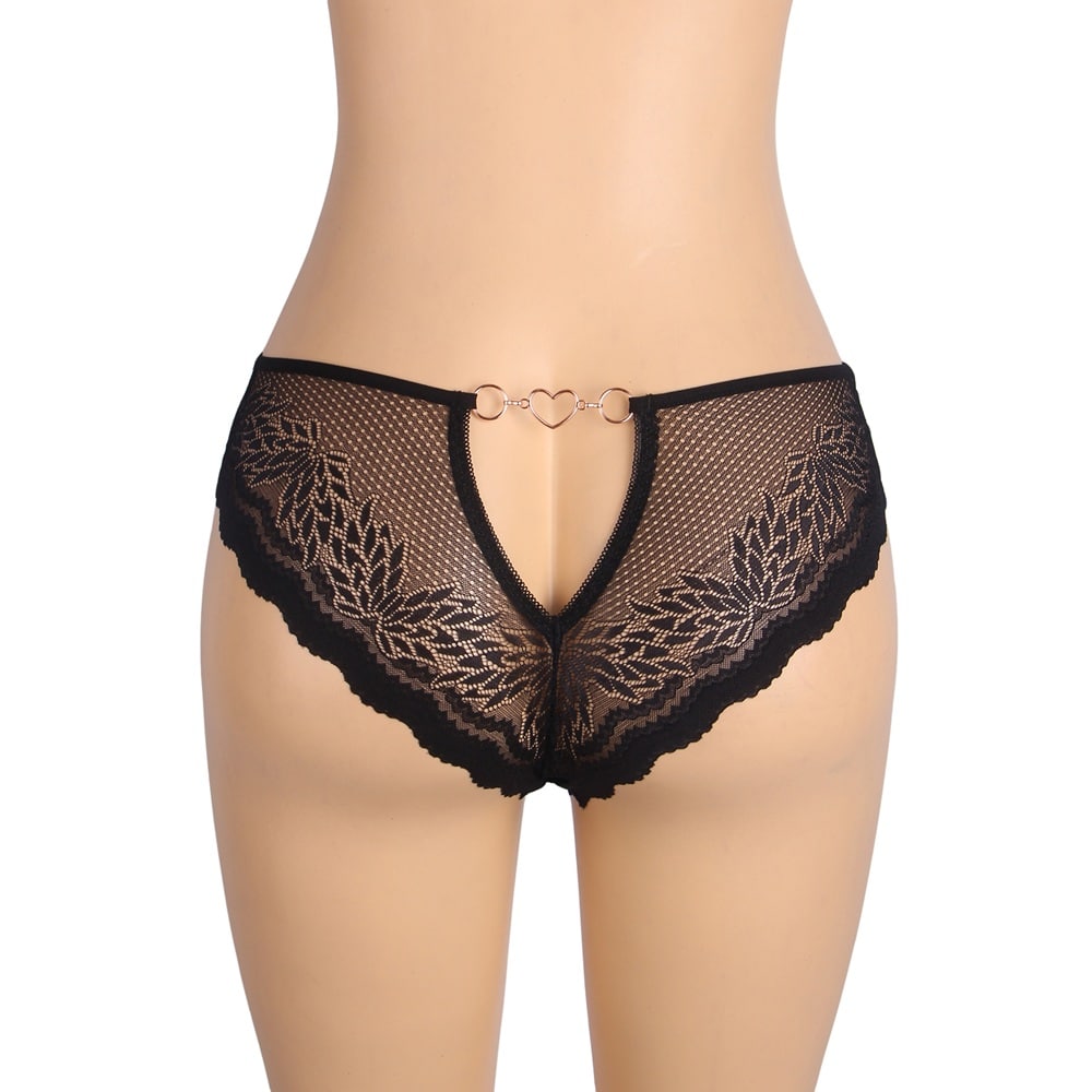 Lace Panties with Metal Heart Black