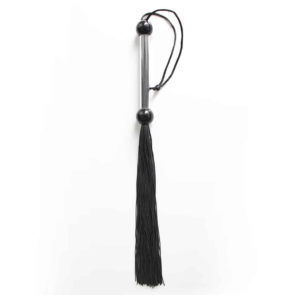 Item number: ETET-292405036-1Soft spanking whip! Defenetely for beginner couples! Soft tails for soft silky smooth touch entry level fetish play. Black silicone flogger with plastic tube handle, 45 cm total length by Naughty Toys.