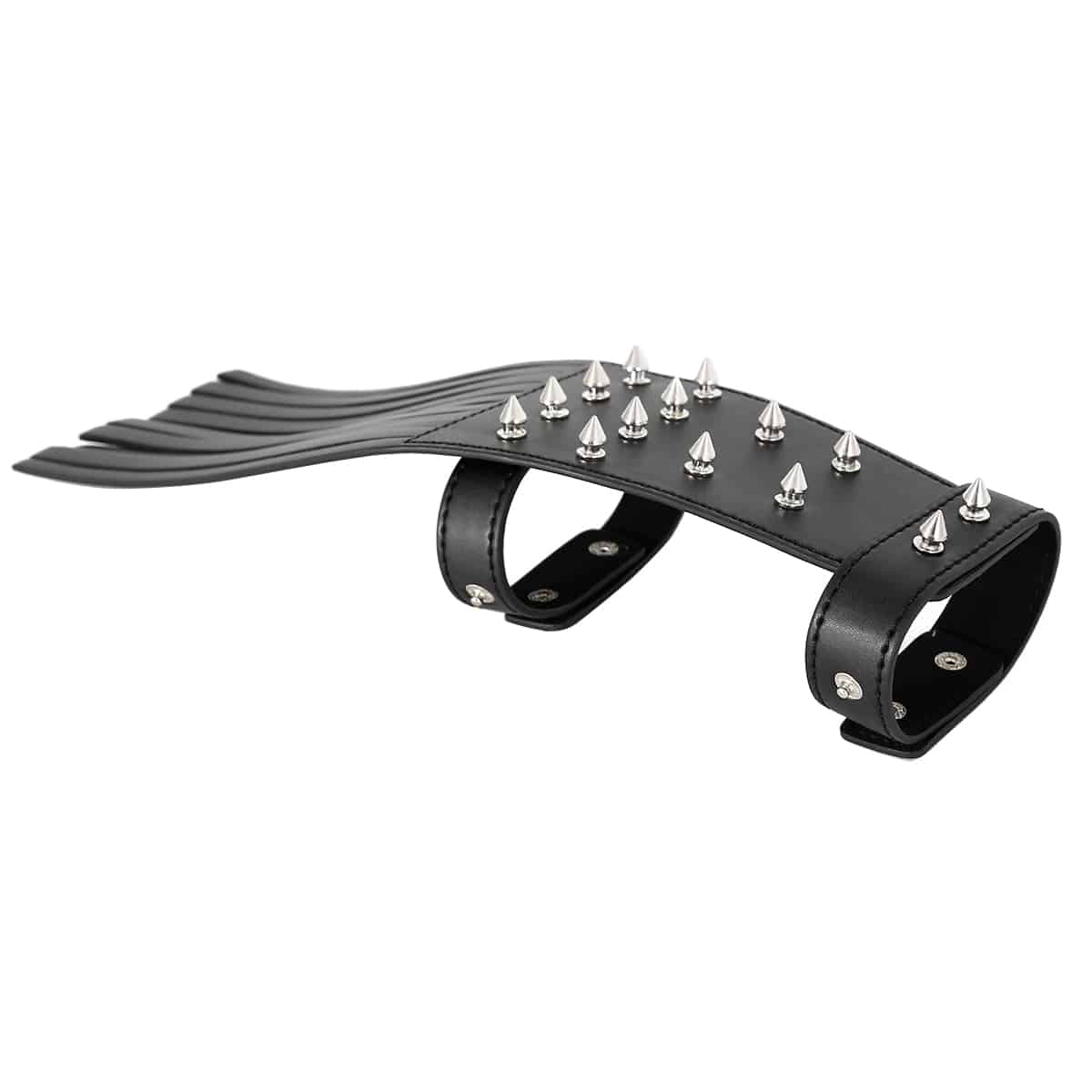 Item number: ETET-282401021Leather spiked armband for wild bdsm game lovers. One size, fully adjustable leather armband covered with four raws of metal spikes.