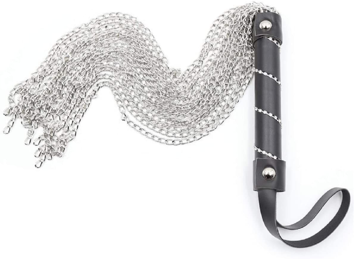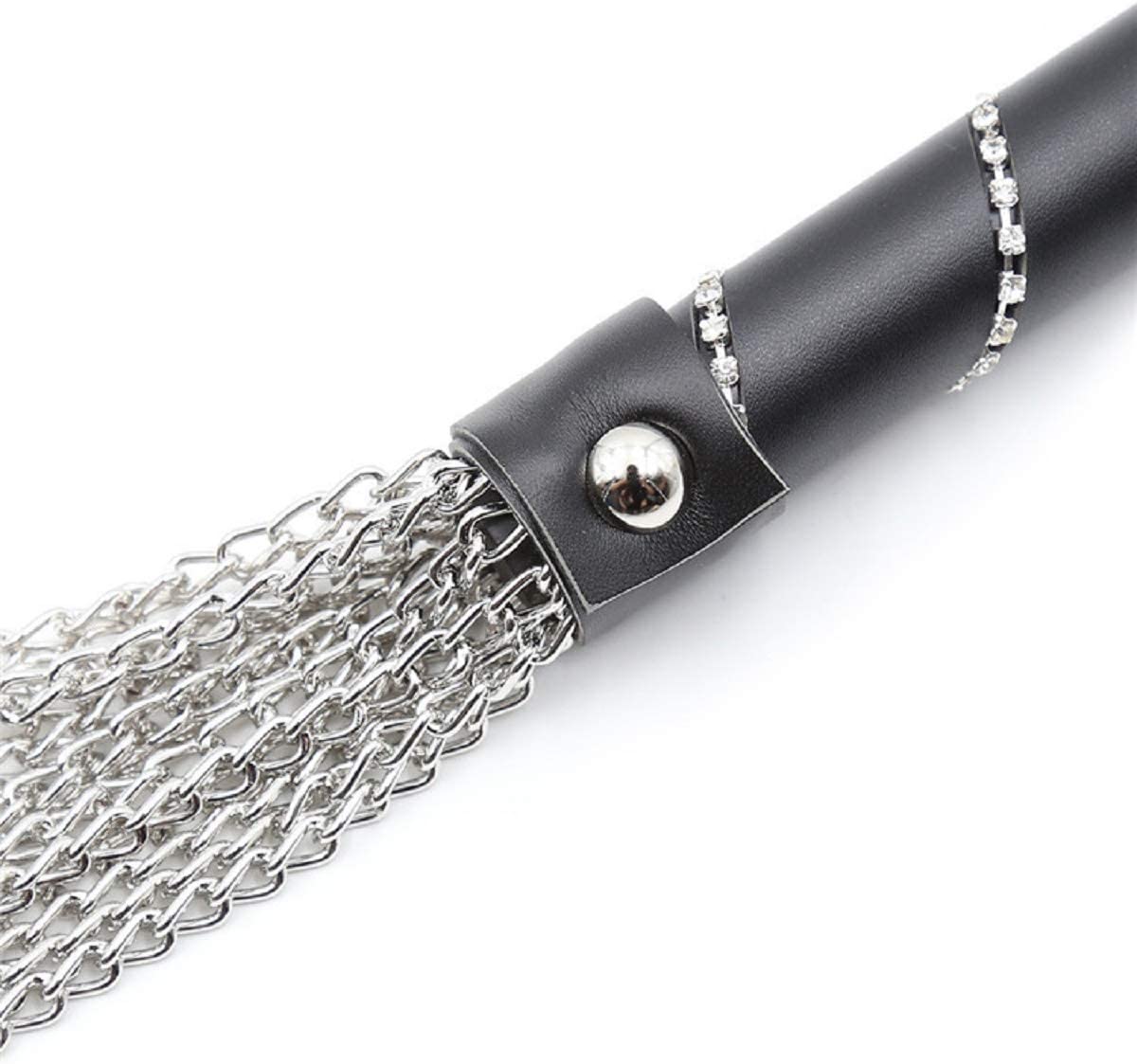 Item number: ETET-292412077Naughty Toys Bdsm fetish flogger whip with metal tassels chain tails and Rhinestone Leather Handle. Lets take BDSM role playing game to the next level, with this amazing SM Flogger whip with 15 chain type tails. Silver Metal Tassels Chain Rhinestone Leather Handle Whip Flogger for amazing Bondage fantasies. Handle grip is embraced with crystal "Svarofski style" jewels. It can be used either by begginers for soft touch play or advanced for hardcore play.