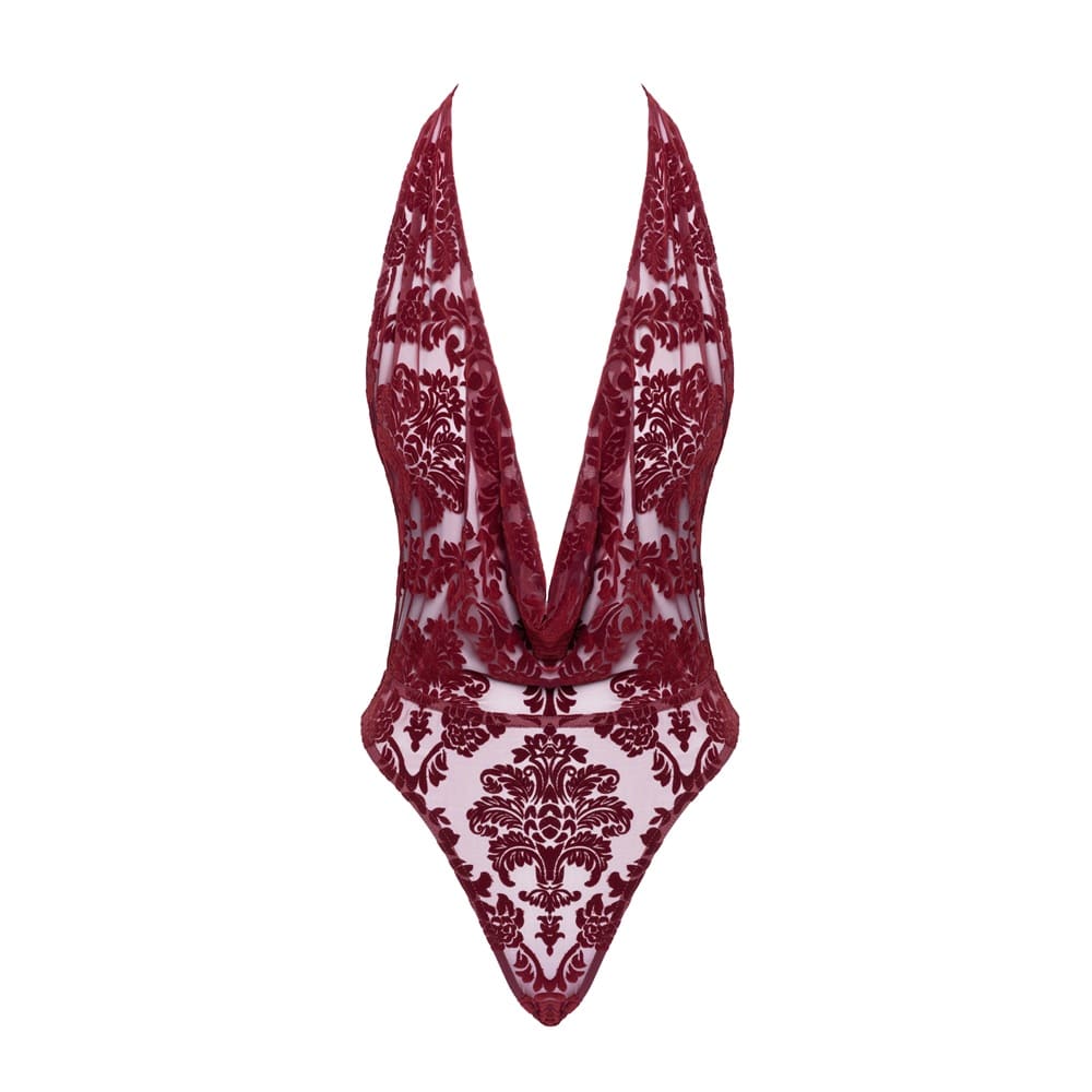 Design: Featuring an open back and an elegant cowl neckline, this bodysuit balances sensuality with refined style. The thong cut enhances the silhouette, creating a sleek, elongated look.