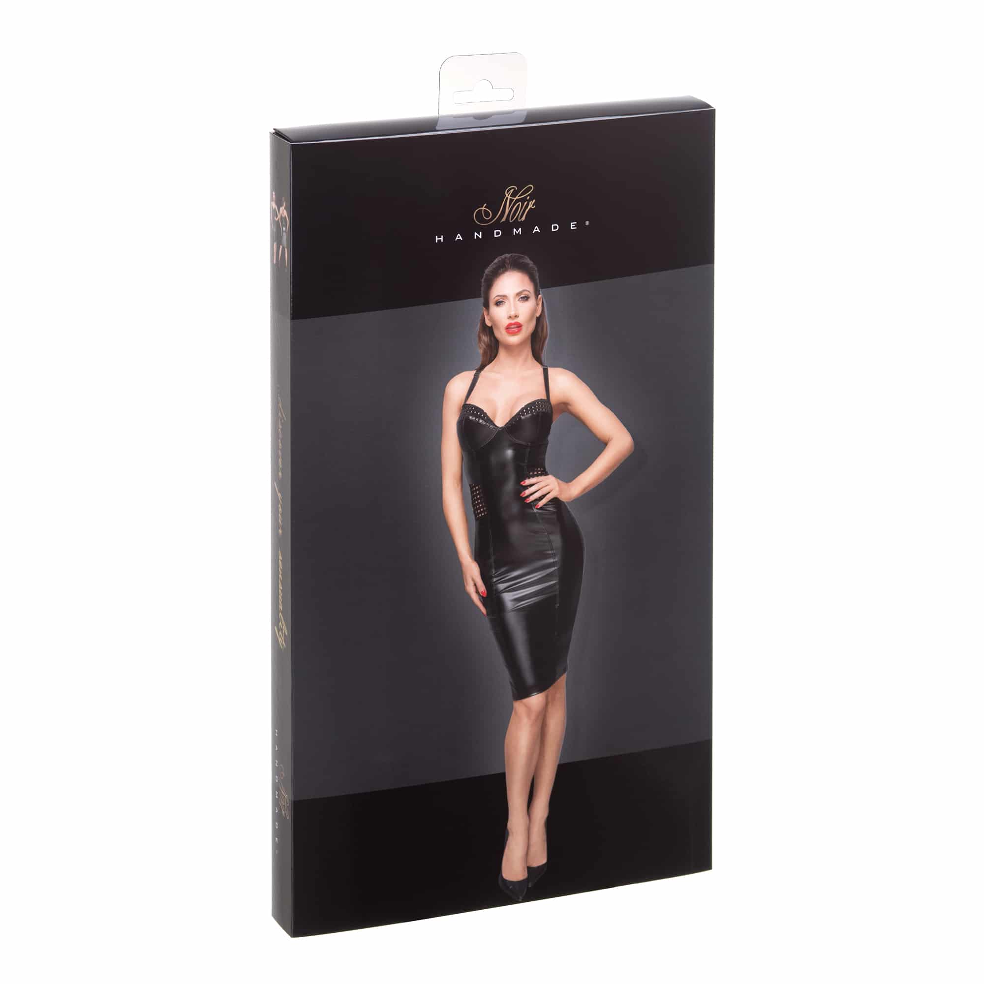 Show off your sexy shape in this amazing black pencil dress from Noir Handmade. You want to look wild, provocative? Or to look elegant on a party? Or want to seduce your lover in your bedroom? This pencil dress will cover you! Tasteful powerwetlook dress that has decorative chequered tape inserts at the waist and bust serves to accentuate your feminine shapes. Comfortable straps are length-adjustable and crossed on the back. You ll easy get the most tempting neckline thanks to half-cup bra support.