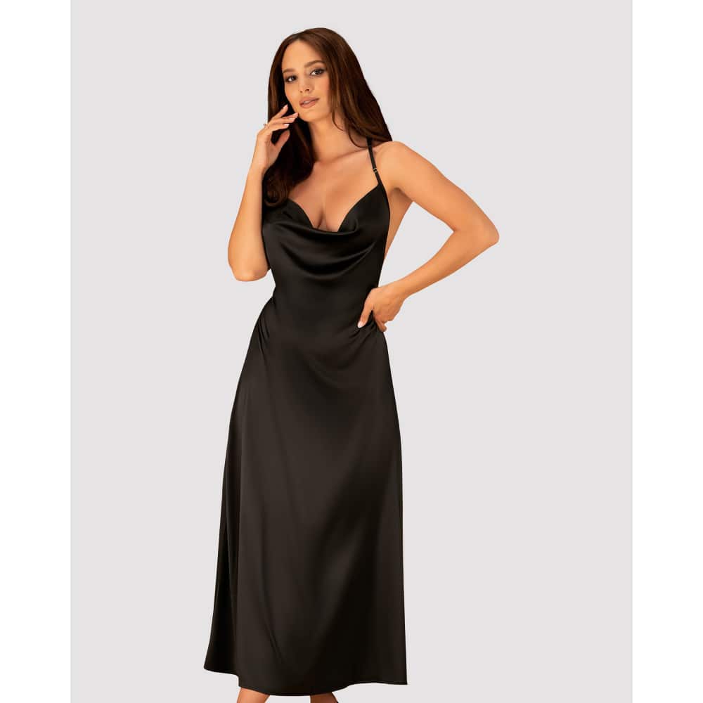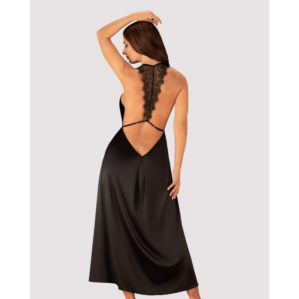 Sexy and feminine black satin long dress for naughty games or just a beautiful good night sleep! The pleasant to the touch satin and delicate lace will make you fall in love with them at first sight, and your special evening will probably end … in the morning!