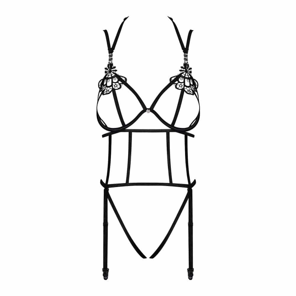 Slip into this minimalistic strappy teddy with open crotch and be ready for the long nights full of moments. The thin straps will emphasize your body in such a sexy way letting your deepest fantasies go wild, the fulfillment of which has never been so simple and… pleasant! Let yourself be carried away by the wave of pleasure that will lead you straight to the unforgettable end of the evening!