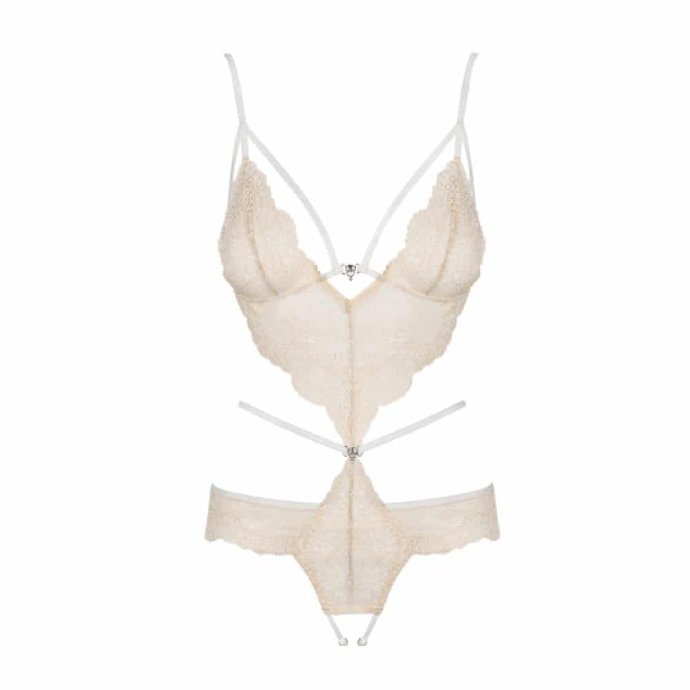 Make sure he knows what you have in your mind… Extremely sexy beige teddy lingerie with inviting open crotch area. Perfect mix of beige lace, delicate straps and shiny zircons is a crazy mixture!
