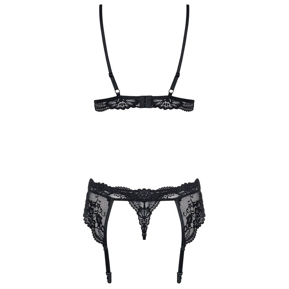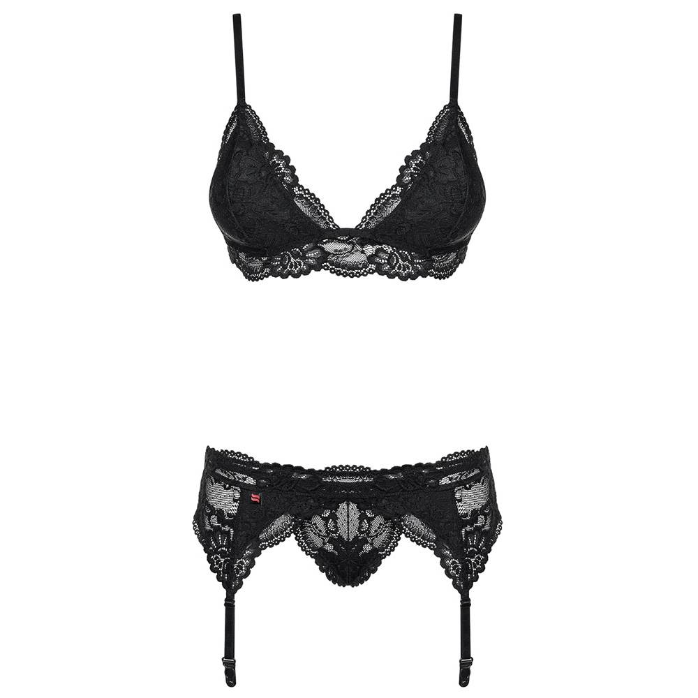 Item number: 22132301111The perfect lingerie set for day or night! Obsessive bra set from soft lace material even for all day wear. The set includes a padded lace bra with hook fastener and adjustable shoulder straps, garter belt and matching lace string.