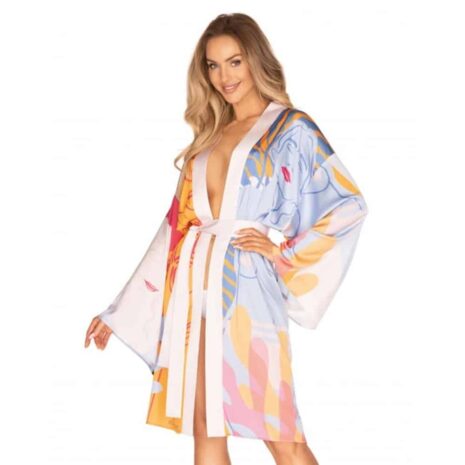 Item number: EK3243Discover the Allure of the Celenty Peignoir by Obsessive!!Step into elegance with the Celenty peignoir, designed with a sophisticated loose kimono cut and adorned with long, wide sleeves. The chic self-tie belt adds a touch of personalized elegance, ensuring a perfect fit every time. Crafted from stunning multicoloured fabric, it features an artistic depiction of three women in lingerie, making it a true work of art.Drape this exquisite piece over your bare skin for a captivating start to a romantic evening, or pair it with your favorite sexy lingerie to set the stage for an unforgettable night of passion. The Celenty peignoir is more than just loungewear; it's an experience.Treat yourself or surprise a loved one with the perfect gift that promises luxury and enchantment.