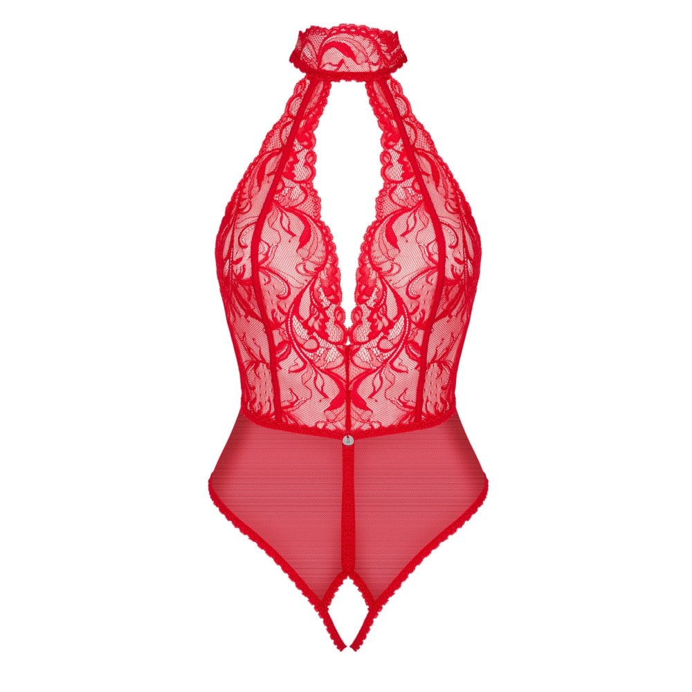It tempts with a sexy cut and delights with the elegance of lace. This teddy from the Dagmarie collection by Obsessive is definitely a must have for delightful pleasures in the bedroom. The open crotch will provide a spicy sensation, and the chic cut will give you a beautiful and feminine look. Would you like to fall in love with red?