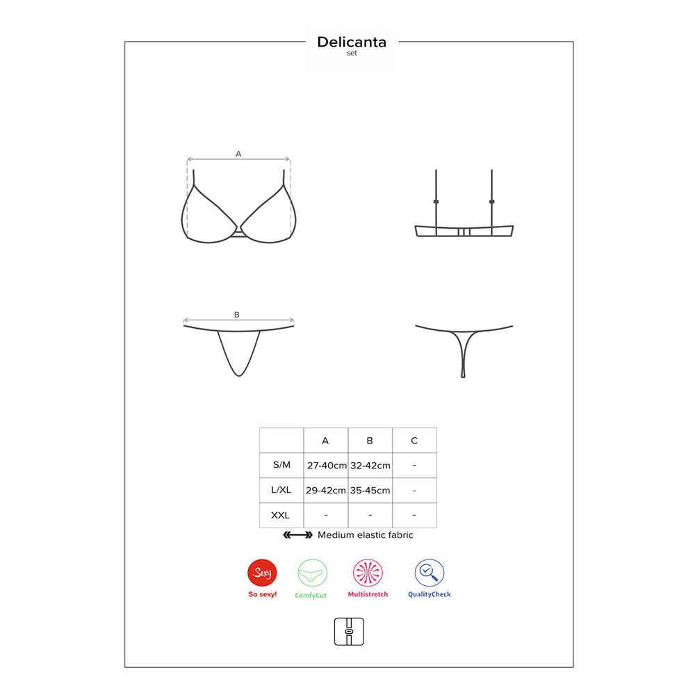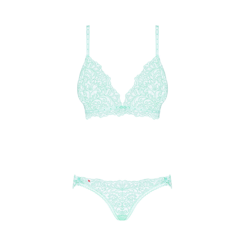 Item number: ETET-DELICANTA-SETCharming floral lace lingerie set from Obsessive lingerie line. You will love this beautiful fresh color on your skin. Soft, triangle cups bra with flirty bow decoration and adjustable shoulder straps. To make your look perfect the set includes a matching thong as well. Wear it at your bedroom or all day long.. You will feel just amazing and He will love to see you in this sexy lingerie.