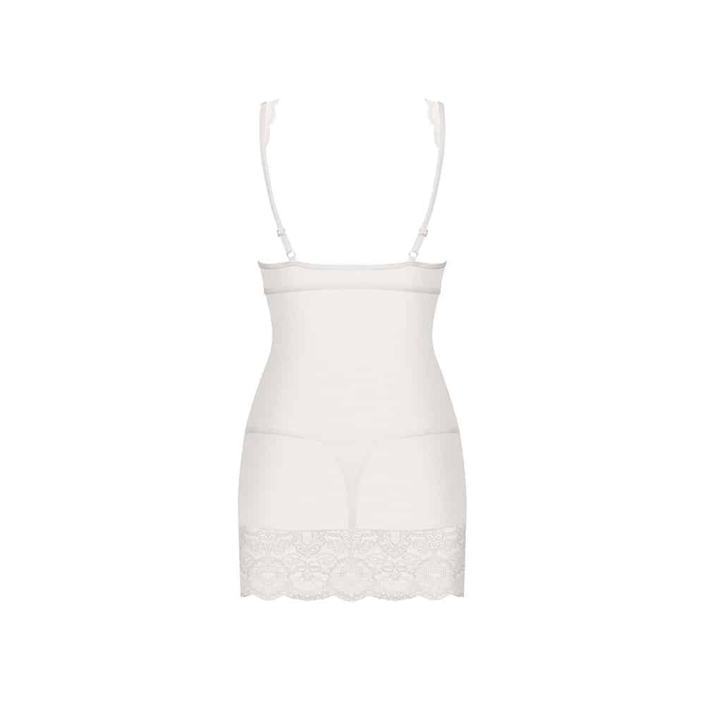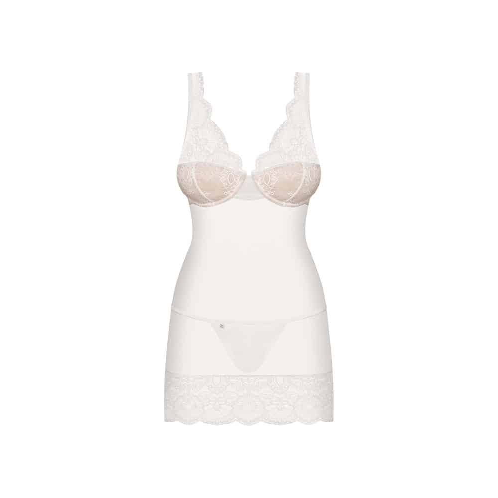 Item number: 853-CHE-2Elegant off-white chemise with charming sligthly padded lace cups. The underwired cups will give beautiful rond shape to your breats. Set includes a translucent mesh string to make your evening wear complete.