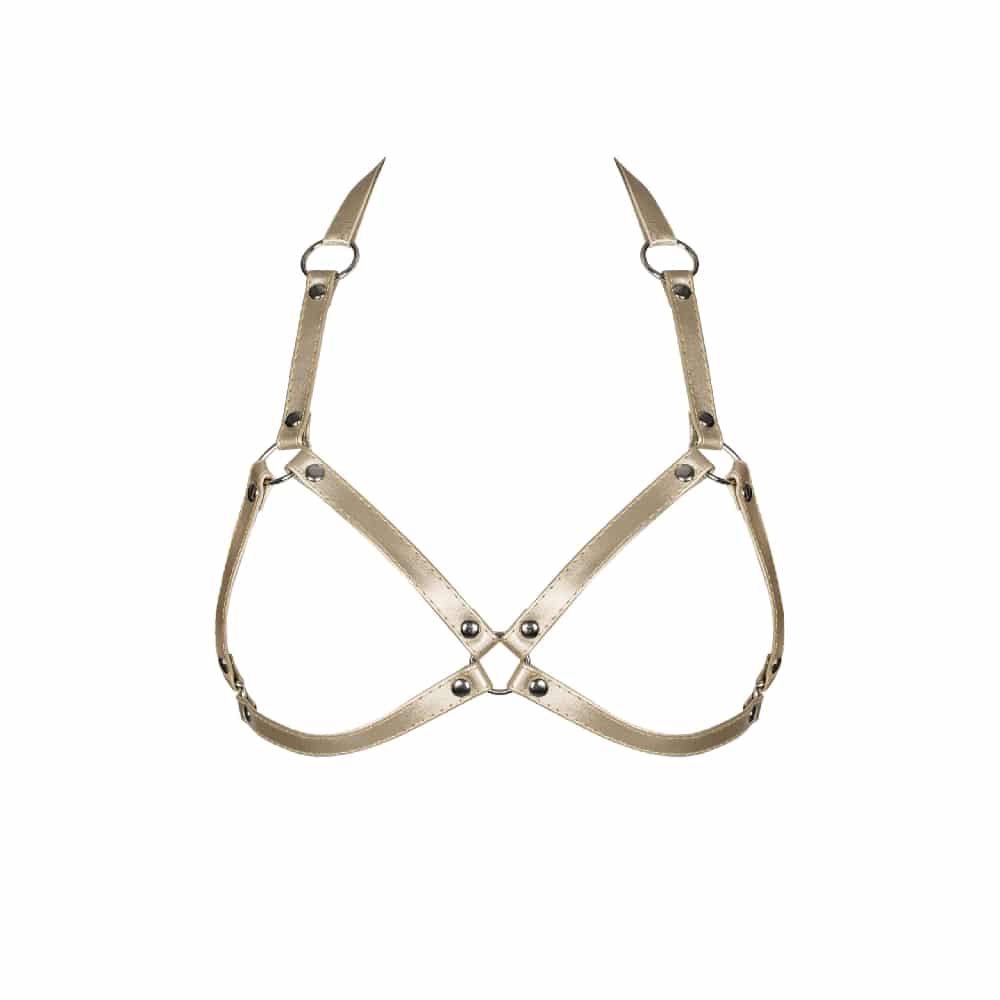 Obsessive Faux Leather Harness Bra Gold