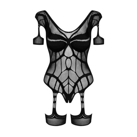 Item number: EKOBSESSIVE-G334-BODYSTOCKING-BLACKHere is a highly seductive design for bold women craving new, exhilarating sensations. The combination of an open-crotch bodystocking with elastic garters will surely crank up the heat in your bedroom! Short sleeves that match the garters, a delicate mesh enveloping the body, a geometric pattern drawing all the attention to the breasts and a deep, plunging cut on the back – what more could you want?