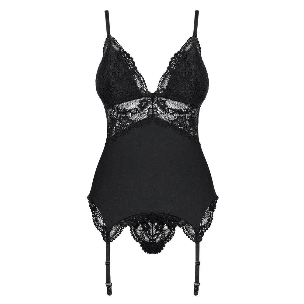 Amazing black teddy lingerie from Obsessive Lingerie to make your night even more romantic with your loved one. This beautiful black corset with delicate lace inserts and adjustable garter belts.
