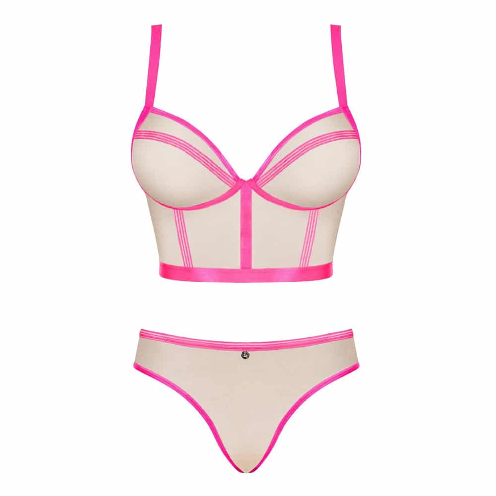 A set of your dreams? Flesh-coloured material, tempting pink stripes and an amazing look – this mixture will warm up the atmosphere in your bedroom! We promise. Neon details will make you want to wear Nudelia every day. You will love the comfortable cut of this set, which makes it totally comfortable to wear, even on a daily basis. Now tell your beau that you are preparing a spicy surprise for the evening. You won’t have to wait long for him to appear by your side.