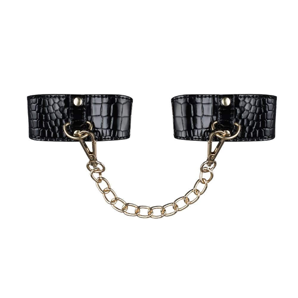 - handcuffs A768 – elegant black leatherlike embossed with an animal pattern