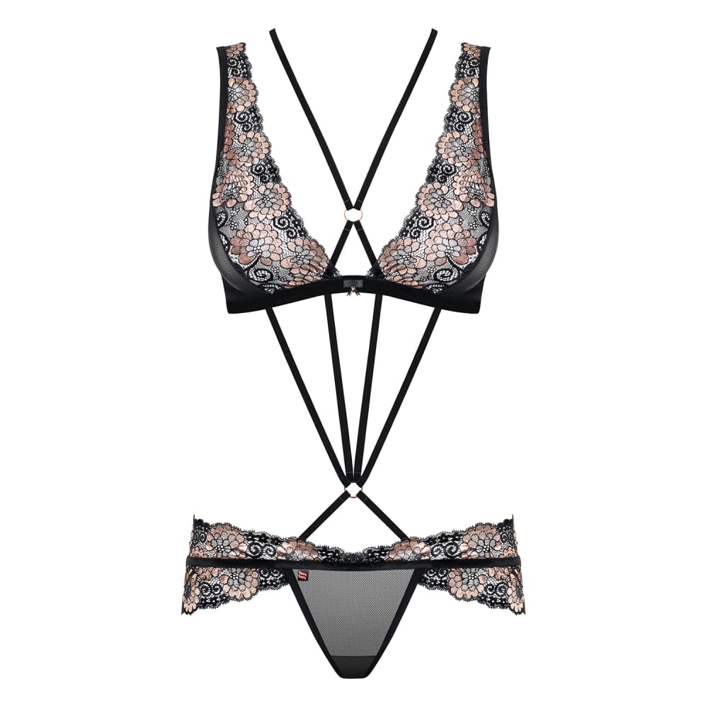 Obsessive Strappy Black Teddy with removable straps set. This stunning design will make you feel super sexy! The delicate straps between the bra and thong give a really seductive look. You can remove them whenever you want to change your look and effortlessly tempt your partner all over again. Wanna try? Don’t hesitate. You’ll love this set!