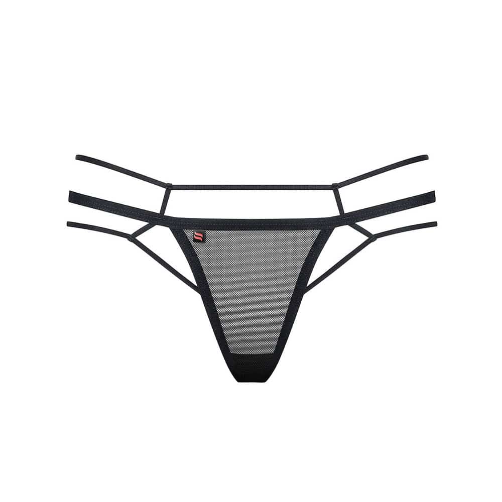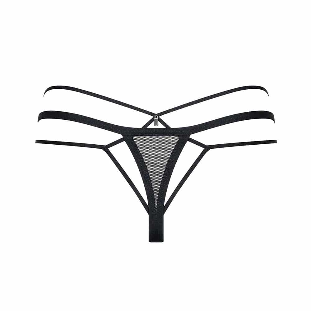 Emphasize your feminine curves with this spicy strappy thong. Delicate mesh thong with sexy straps and unique adornment.