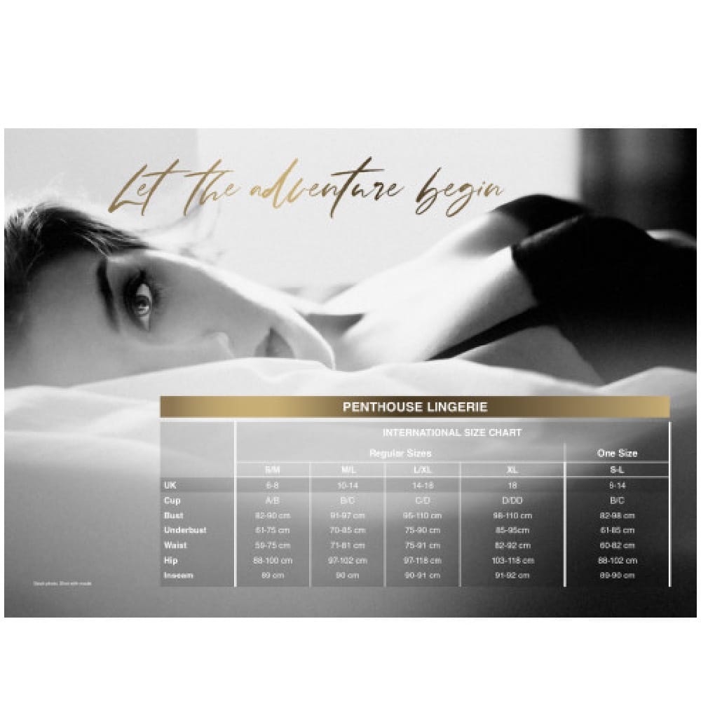 Soft, high-quality lace panty, nestles perfectly against your body, providing a high level of comfort. The size of the lingerie can be also be adjusted with the lacing on the side. The floral lace pattern and the bow application make it almost too hot to handle. The opening in the crotch truly opens up exciting possibilities…