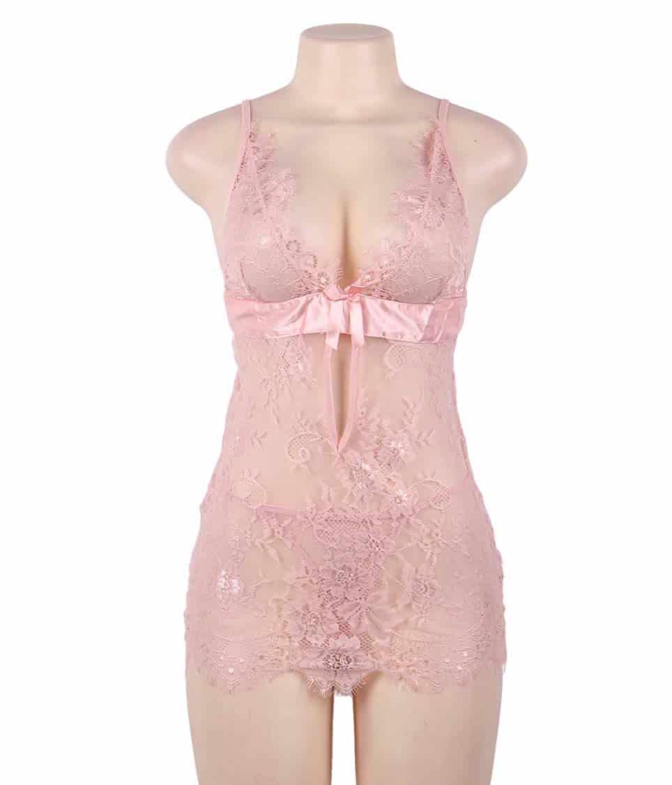 Pink babydoll with matching string.