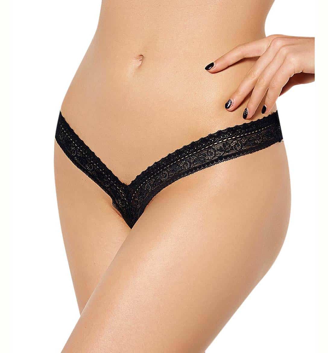 Item number: P5084-1PWrap your sexy booty in this minimalistic black lace beauty. The cheeky string will sit very low on your hip. Delicate lace underwear covers only small part of your body. It will draw the attention of your lover for sure!