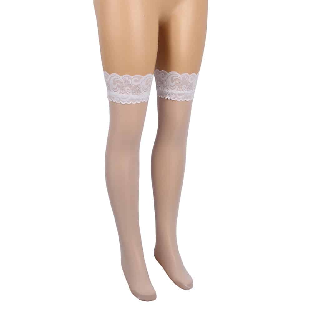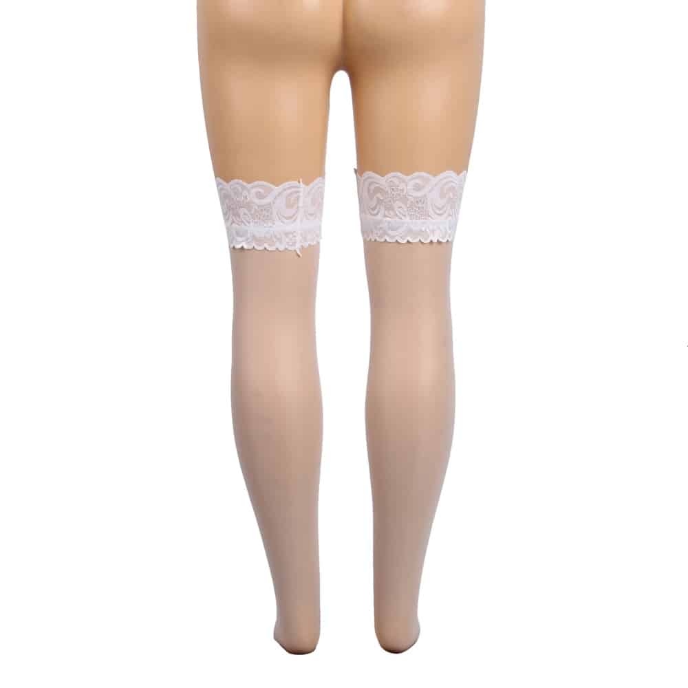 Plus Size White Lace Stockings with Silicone Straps