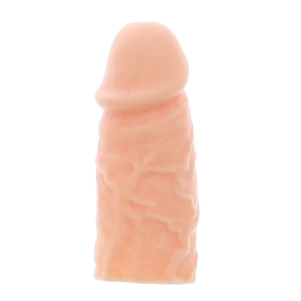 Super realistic girth extender sleeve made of liquid silicone, which is soft, super stretchable, and phthalate free. The sleeve increases the girth of the penis and can be trimmed at the base to fit any size.