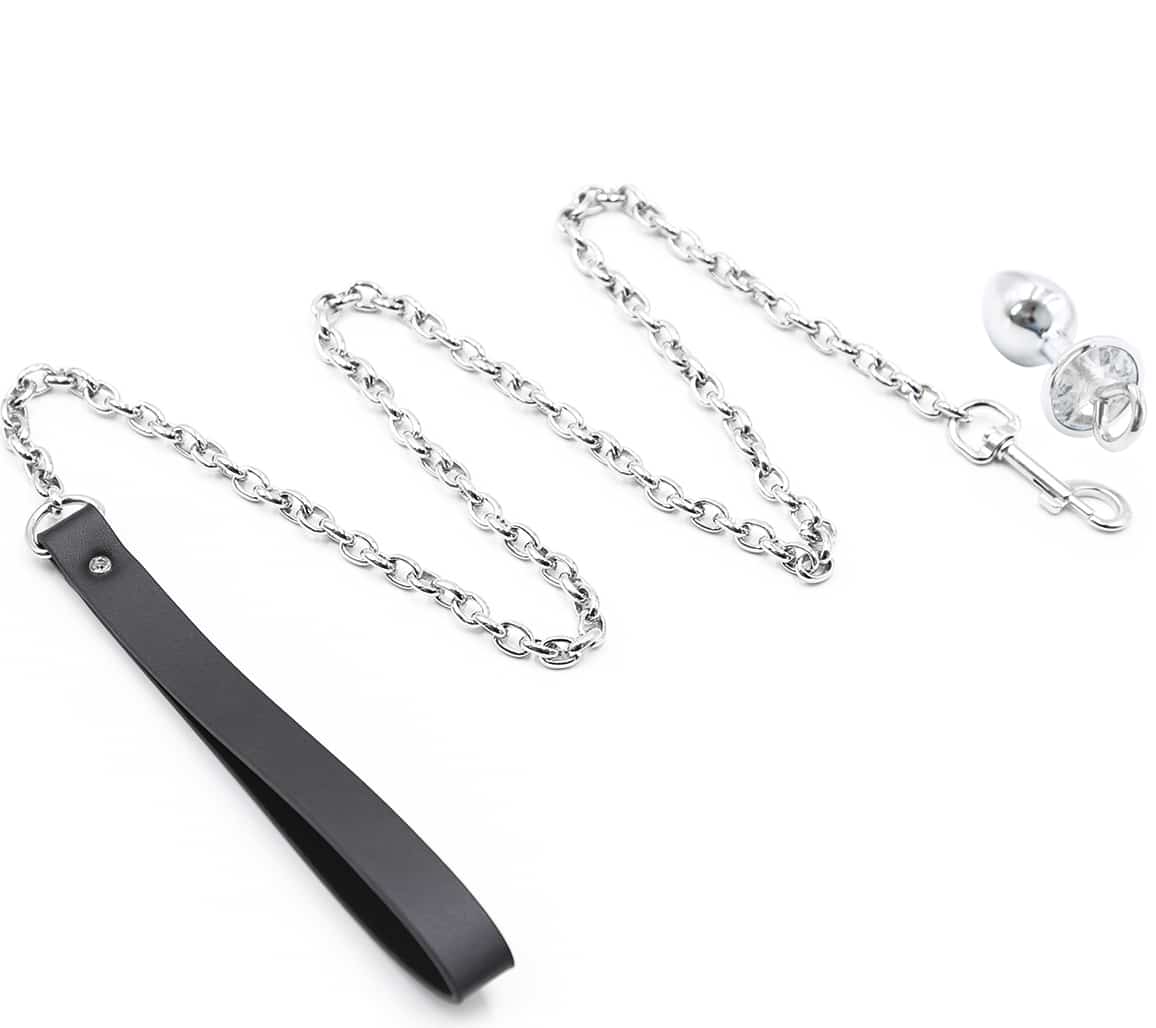 Small detachable jewelled butt plug with chain leash