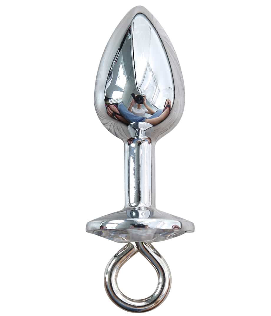 Enhance your fetish play with this magnificent small and fully detachable crystal clear jewelled metal butt plug with metal chain leash by NAUGHTY TOYS. For more information, please visit the product's full page description, which is down below